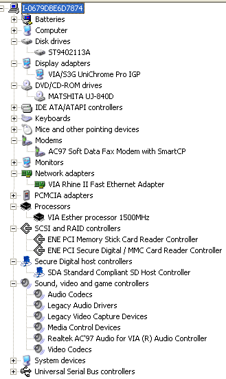 - графическая подсистема— интегрированная, VIA Unichrome Pro, до 64 Мб