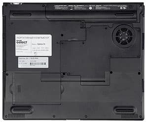Снизу — решетки динамиков, большая крышка блока процессора, модулей памяти и плат mini PCI с вентиляционной решеткой и сдвижная крышка отсека жесткого диска.