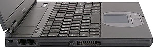 Итак, ноутбук действительно легкий. Габариты определяются в основном матрицей, толщина корпуса очень небольшая. Все необходимые для работы порты расширения присутствуют. Из "приятных пустячков" — отдельный разъем для карт Compact Flash — обычно такими разъемами нас не балуют. Правда, фотоаппараты сейчас все больше SD Card используют, так что по логике вещей и такой разъем бы не помешал, ну да ладно. Что есть — то есть, если необходимо, можно воспользоваться переходником. Еще одно замечание — естественно, никто не запрещает подключать к ноутбуку устройства для работы с оптическими дисками, использующие интерфейс USB или IEEE 1394. Просто входящие (как опция) в комплект устройства позволяют работать без дополнительного источника питания, что, согласитесь, в поездке немаловажно. Немного расстроило отсутствие инфракрасного порта — иногда возможен доступ в Интернет только с помощью мобильного телефона. Правда, эту проблему может решить опциональный Bluetooth или USB инфракрасный порт.