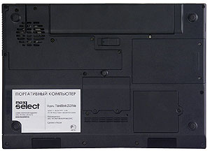 Снизу заборная решетка системы вентиляции и крышки отсеков жесткого диска, модулей памяти и плат mini PCI.