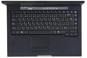Внешне ноутбук смотрится весьма оригинально. Корпус полностью выполнен из угольно-черного пластика. TravelBook Z42Wide — один из немногих встречавшихся мне ноутбуков, который целиком выполнен из одинакового пластика. Оживляет «ночной пейзаж» крупный серебристый логотип. Правда, почему-то он размещен так, что при открытой крышке оказывается «вверх ногами». Вообще, я подметил интересную закономерность — логотипы западных (и восточных) производителей обычно размещаются так, чтобы при открытой крышке демонстрировать марку ноутбука окружающим, наших — при закрытой крышке хозяину. Разница в менталитете?