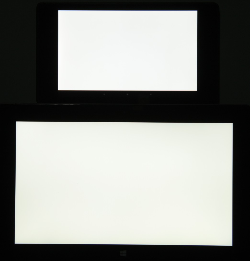 Видно, что цвета не сильно изменились у обоих планшетов, но у Surface Pro 2 контраст уменьшился в большей степени из-за высветления черного. Затем белое поле: