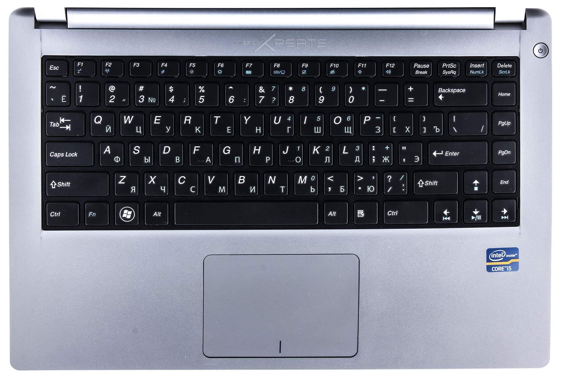 Если ноутбук нужен для работы, то качество клавиатуры является одной из важнейших характеристик. Увы, ультрабук MicroXperts U400-04 W8SL качественной клавиатурой похвастаться не может. В данной модели, как и в большинстве современных ноутбуков, применяется так называемая клавиатура островного типа с увеличенным расстоянием между клавишами. Отдельного цифрового блока нет (что совершенно нормально для ультрабука такого размера), нет и модной подсветки клавиш. Клавиши, как и сама подложка под ними, выполнены из черного пластика.