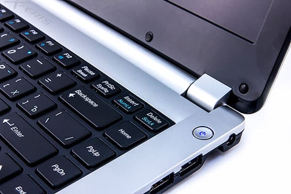В правом верхнем углу расположена всего одна кнопка — включения ультрабука, причем эта кнопка подсвечивается либо синим, либо оранжевым цветом. Оранжевый цвет соответствует режиму зарядки батареи, а синий сигнализирует о том, что батарея полностью заряжена или что ультрабук работает от батареи в автономном режиме. Ну и кроме того, в режиме сна кнопка питания мигает синим цветом.