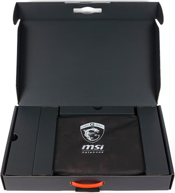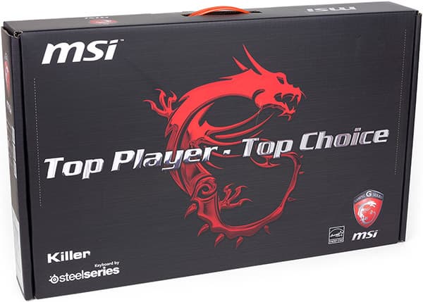 Ноутбук MSI GE70 2OD поставляется в довольно большой картонной черной коробке с ручкой, на которой красуется красный логотип дракона (логотип игровой серии ноутбуков MSI).
