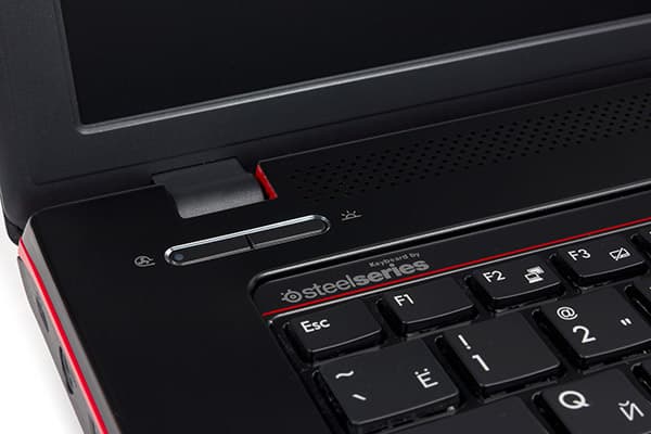 В правом верхнем углу рабочей поверхности расположена кнопка включения/выключения питания, а в левом — кнопка включения/выключения подсветки клавиатуры и кнопка Cooler Boost, нажатие на которую приводит к увеличению до максимума скорости вращения вентилятора.