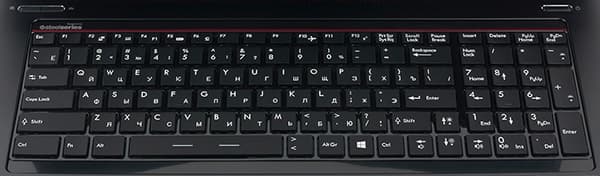 Раскладка клавиатуры вполне стандартная и нареканий не вызывает. Верхний ряд клавиш традиционно имеет две функции: либо традиционные F1—F12, либо функции управления ноутбуком; один набор работает напрямую, второй — в сочетании с функциональной клавишей Fn.