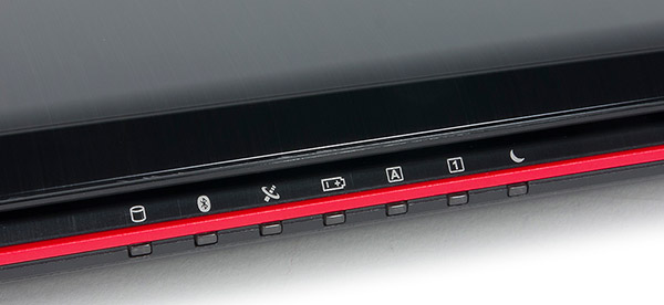 Светодиодные индикаторы состояния ноутбука (всего их семь) вынесены на переднюю грань корпуса, но остаются видны даже при закрытии крышки ноутбука.