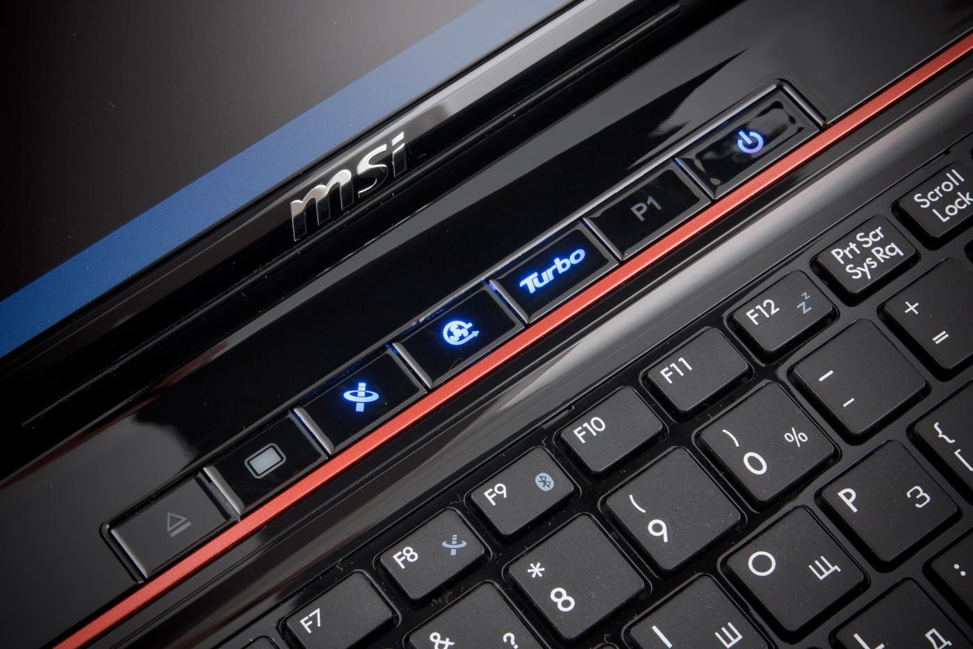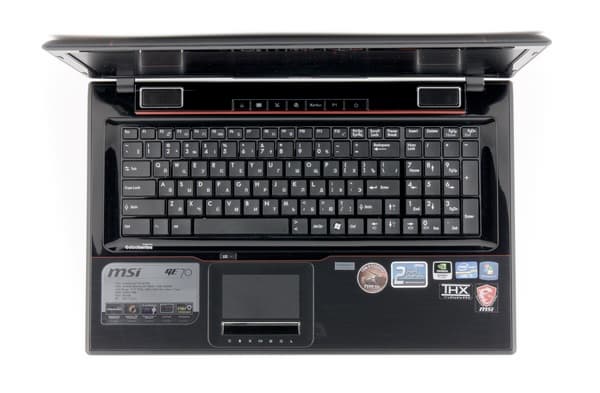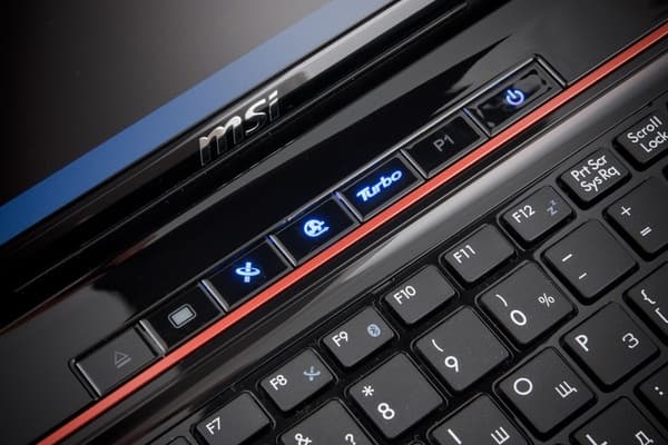 В отличие от большинства современных ноутбуков, где от дополнительных клавиш почему-то отказываются, у MSI GE70 они есть, причем довольно много. Кстати, несмотря на тенденции современного минималистичного дизайна, призывающего убирать дополнительные клавиши (в Macbook даже клавишу питания втиснули в клавиатуру на место Del), иметь дополнительные клавиши над клавиатурой удобно — на них нажимаешь не задумаываясь, в отличие от сочетаний Fn+.