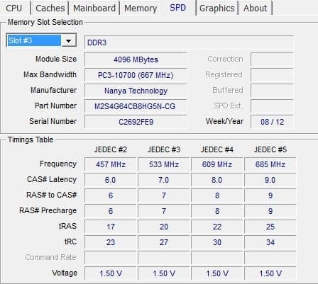 | Оперативная память | DDR3 1333/1600 МГц, 2 слота, до 16 ГБ Установлен модуль Nanya M2S4G64CB8HG5N-CG с параметрами 4 ГБ DDR3-1333 DDR3 SDRAM (8-8-8-22 @ 609 МГц) (7-7-7-20 @ 533 МГц) (6-6-6-17 @ 457 МГц) (5-5-5-14 @ 380 МГц) | ||