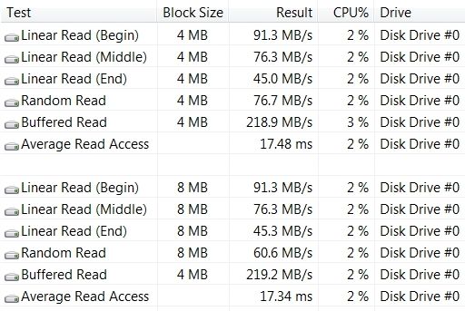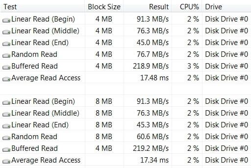 Ну и, наконец, посмотрим на производительность последней подсистемы — жесткого диска.