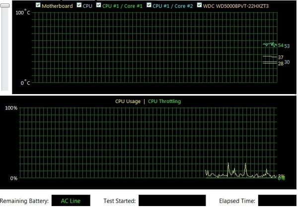 .При этом в простое температура процессора не такая уж и низкая — 54 градуса.