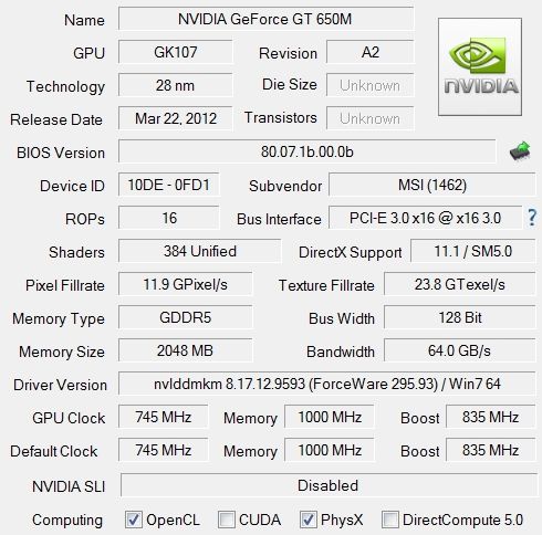 и внешняя NVIDIA 650M.