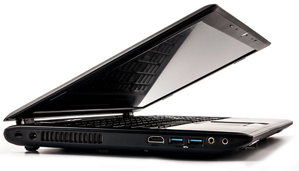На левом торце корпуса ноутбука расположены два порта порт USB 3.0, разъем HDMI, два аудиоразъема типа mini-jack (наушники, микрофон), разъем питания и отверстие для замка Kensington lock