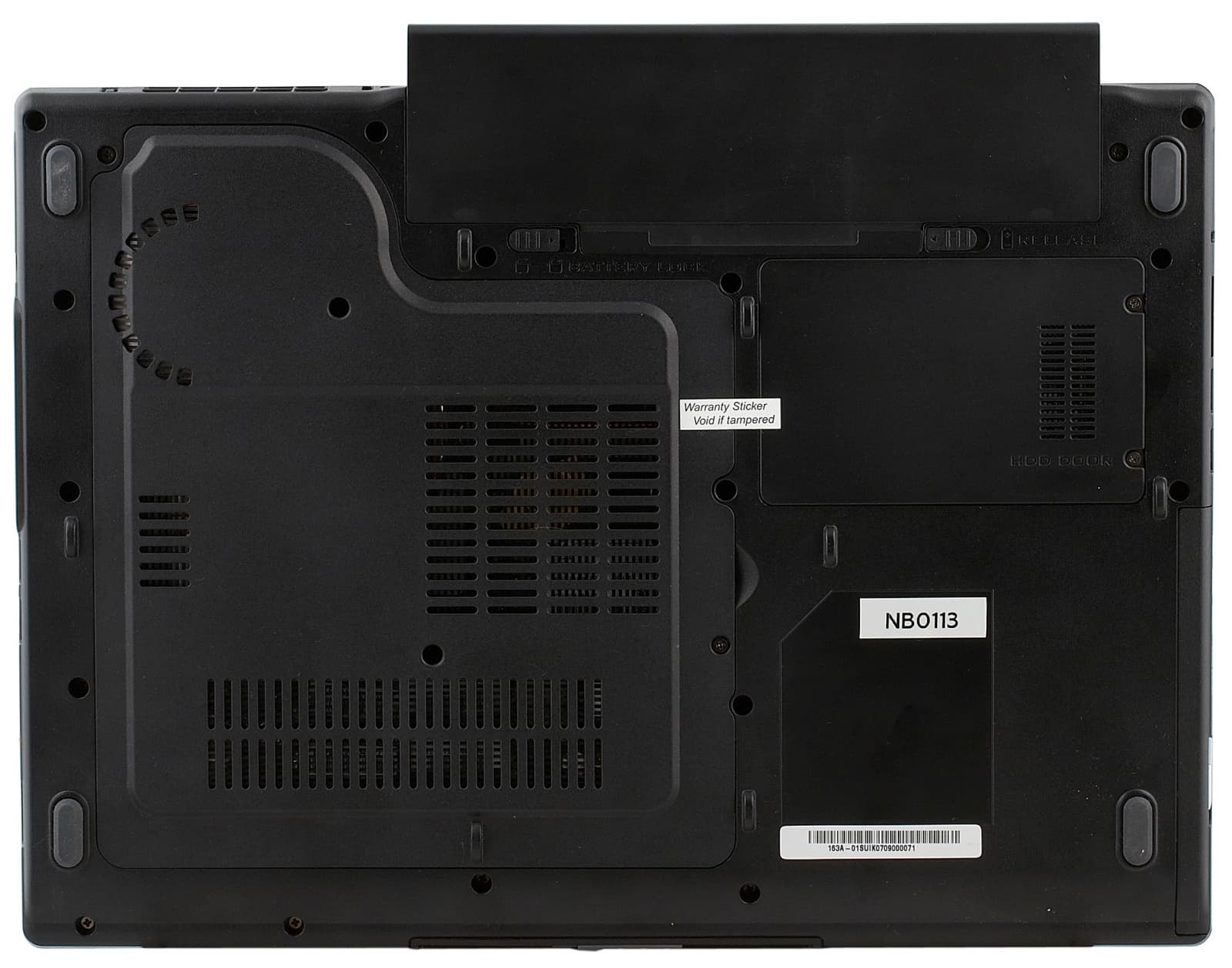 Нижняя крышка сделана из матовой и достаточно дешево выглядящей пластмассы, в принципе, крышка унифицирована. Все видимые пользователю части корпуса сделаны из черной блестящей пластмассы. В целом, ноутбук выглядит на свое позиционирование — не слишком дешево, но и не слишком дорого.