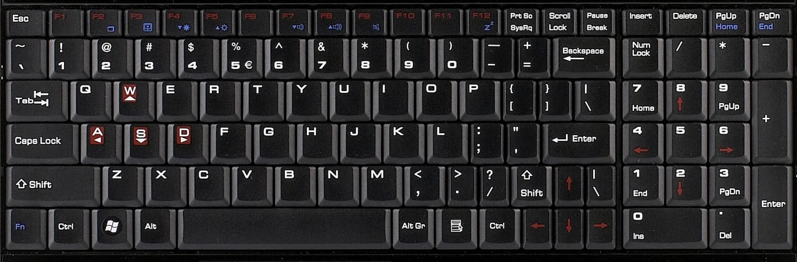 Наконец, курсорные стрелки и 4 клавиши в правой части, которые,.по задумке производителя, чаще всего используются геймерами, также сделаны красного цвета.