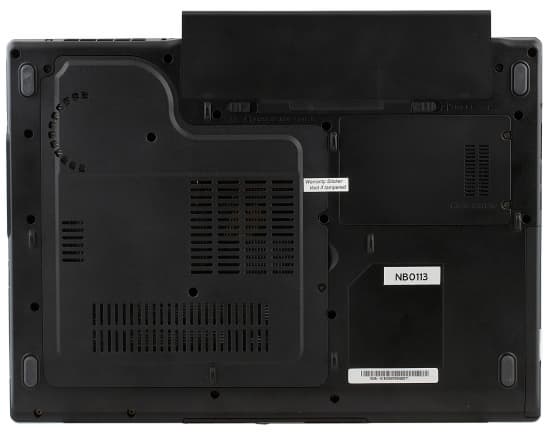 Задняя грань целиком отдана батарее и решетке вентиляции. Кстати, на ней есть еще один разъем для замка Кенсингтона. Батарея у GX600 повышенной емкости, поэтому выступает из корпуса.