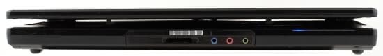 Аудиоразъемы расположены на передней грани, как обычно делается у чисто настольных моделей. Как уже неоднократно отмечалось, при работе штекер от внешней акустики или микрофона может мешать и цепляться за запястья. Рядом находится многоформатный картовод — в принципе, его присутствие здесь допустимо. Когда в нем нет карты, картовод закрывается заглушкой.