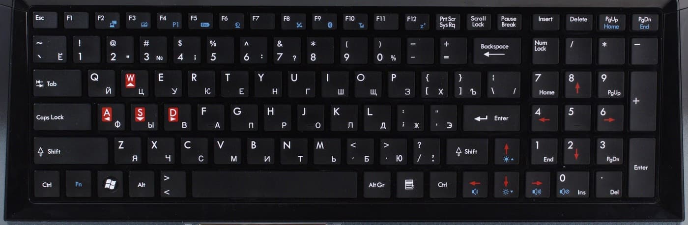 В раскладке присутствует цифровой блок. Это двойной плюс: можно не только вводить цифры, но и использовать его как курсор — многие игроки предпочитают именно его (особенно если речь идет об играх, где мышь не задействуется).