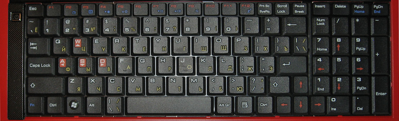 Здесь она сделана аляповато-яркой, красный цвет и контрастный дизайн просто-таки бьет по глазам. Однако при этом дизайн выглядит очень простым, даже примитивным. Особенно в части над клавиатурой. Поэтому общее впечатление от открытого ноутбука получается: «Хотели дешево и сердито, а получилось…». Очень похоже на «дотюнингованные» изделия отечественного автопрома, которые несомненно бросаются в глаза на дороге, но назвать впечатление от них положительным язык не поворачивается. Увы, исправить это никак нельзя, потому как примитивно-простые обводы, бритвенная сетка и красные вставки — это фирменный стиль данной модели. Единственный вариант заиметь такой ноутбук, если вы не готовы мириться с этим дизайном — подыскать модель-клон в виде Medion Akoya X7811.