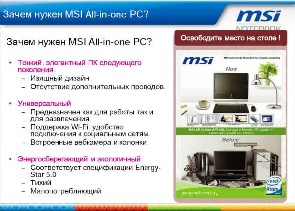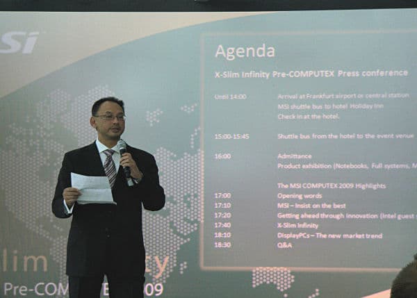 Основным событием стало представление флагманской линейки ноутбуков MSI, X-Slim. Сверхтонкие ноутбуки, выполненные в том же стиле, что и нашумевший MacBook Air, должны стать центральным продуктом всего модельного ряда ноутбуков.