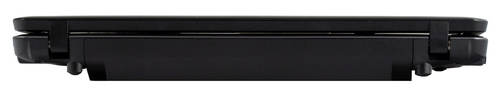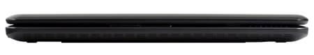 По фотографии можно сделать не совсем правильный вывод о толщине, которая может показаться больше, чем есть в действительности. Но на самом деле, корпус в закрытом состоянии имеет толщину от 2 см в передней части до 3 см у задней кромки, что совсем немного, хотя когда ноутбук сам по себе компактный (19x30 см) визуально пропорции воспринимаются иначе, чем у более крупных моделей. А главное, на этот раз разработчики решили сделать достаточно большой просвет за счет ножек, причем в случае с расширенной батареей (в качестве опции предлагается 6-ячеечная взамен 3-ячеечной) она также выступает вниз и ноутбук опирается именно на нее. Это также увеличивает формально толщину, но в гораздо большей степени положительно отражается на эффективности охлаждения. Забегая вперед, отметим, что отмеченные у X410 недостатки по этой части, в данном случае полностью решены. Ноутбук очень легкий: 1,3-1,4 кг в зависимости от выбранной батареи.