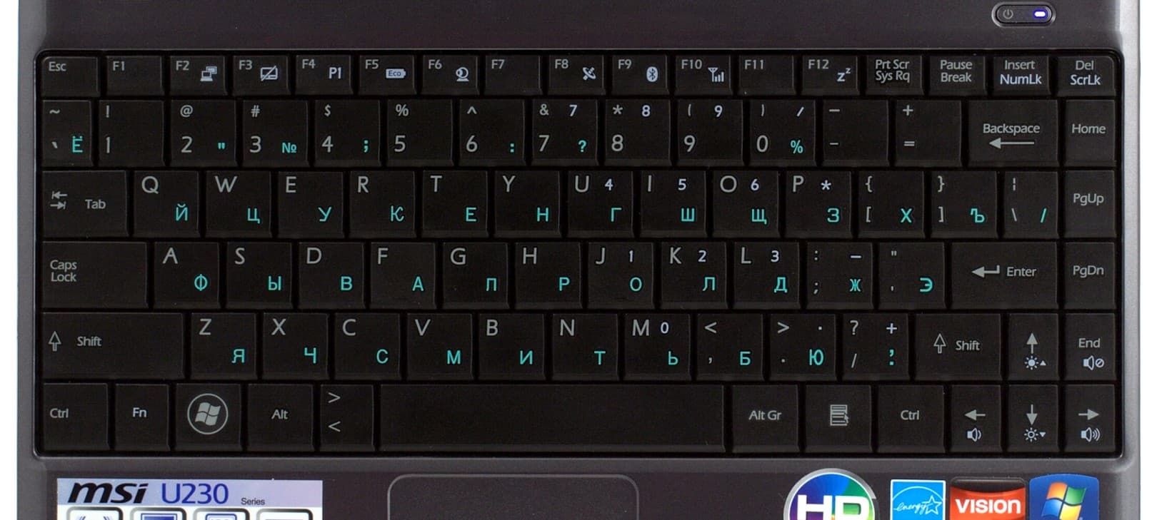Все индикаторы собраны у правого края, светят неагрессивно, так что от работы отвлекать не будут. Дополнительных клавиш на корпусе нет, как и у большинства ноутбуков такого класса, соответствующие функции вызываются нажатием функциональных клавиш из верхнего ряда одновременно с Fn.