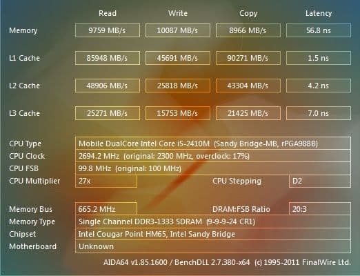 | Процессор | Mobile DualCore Intel Core i5-2410M, 2300 МГц (23×100) |