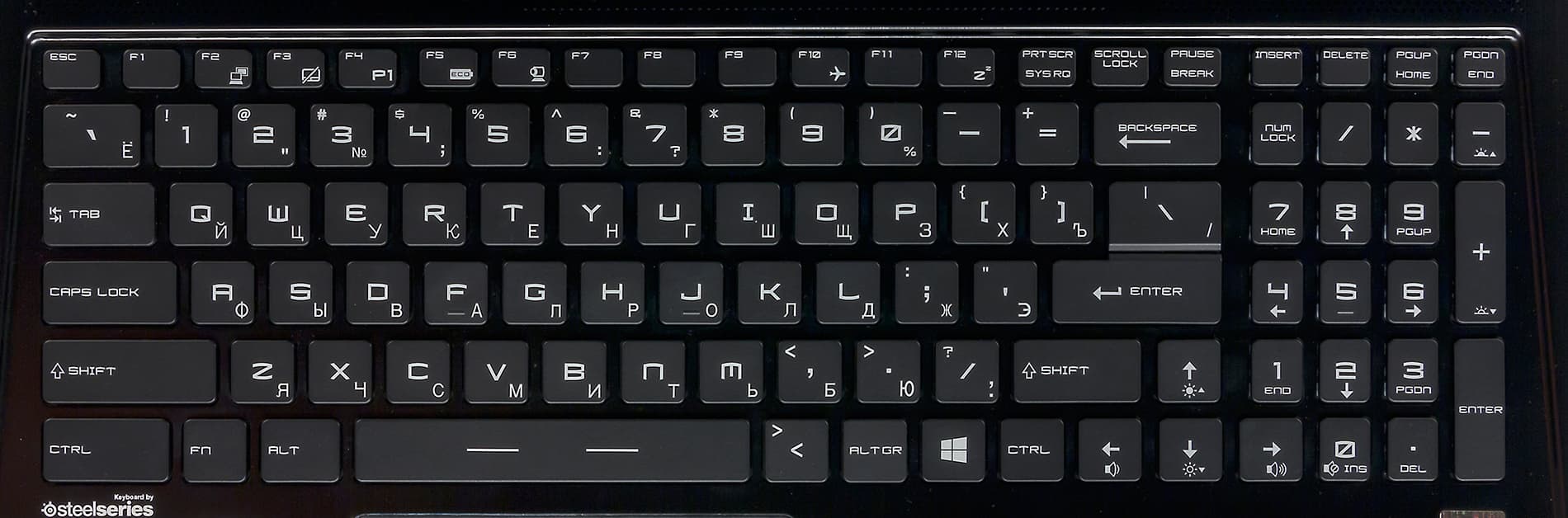 | Устройства ввода | Клавиатура | островного типа с подсветкой и блоком NumPad (SteelSeries) |