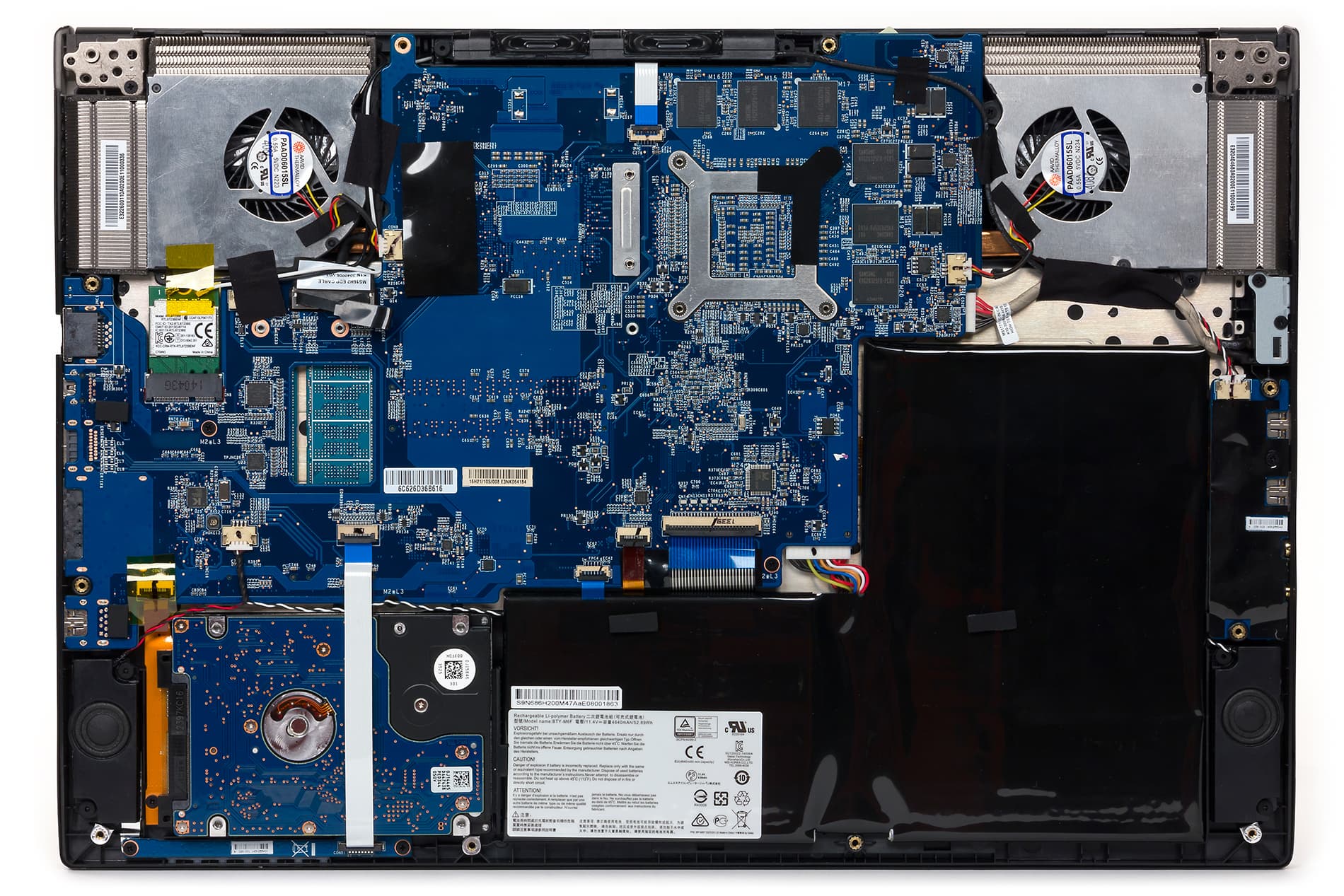 Подсистема хранения данных в этом ноутбуке называется Super RAID. Она включает два SSD-накопителя Toshiba THNSNH128G8NT с интерфейсом mSATA и емкостью 128 ГБ каждый, которые объединены в RAID-массив уровня 0 по технологии Intel RST. Кроме того, имеется и отдельный HDD-диск HGST HTS721010A9E630 емкостью 1 ТБ. Понятно, что на RAID-массив устанавливается операционная система и все приложения, а HDD-диск используется для хранения данных.