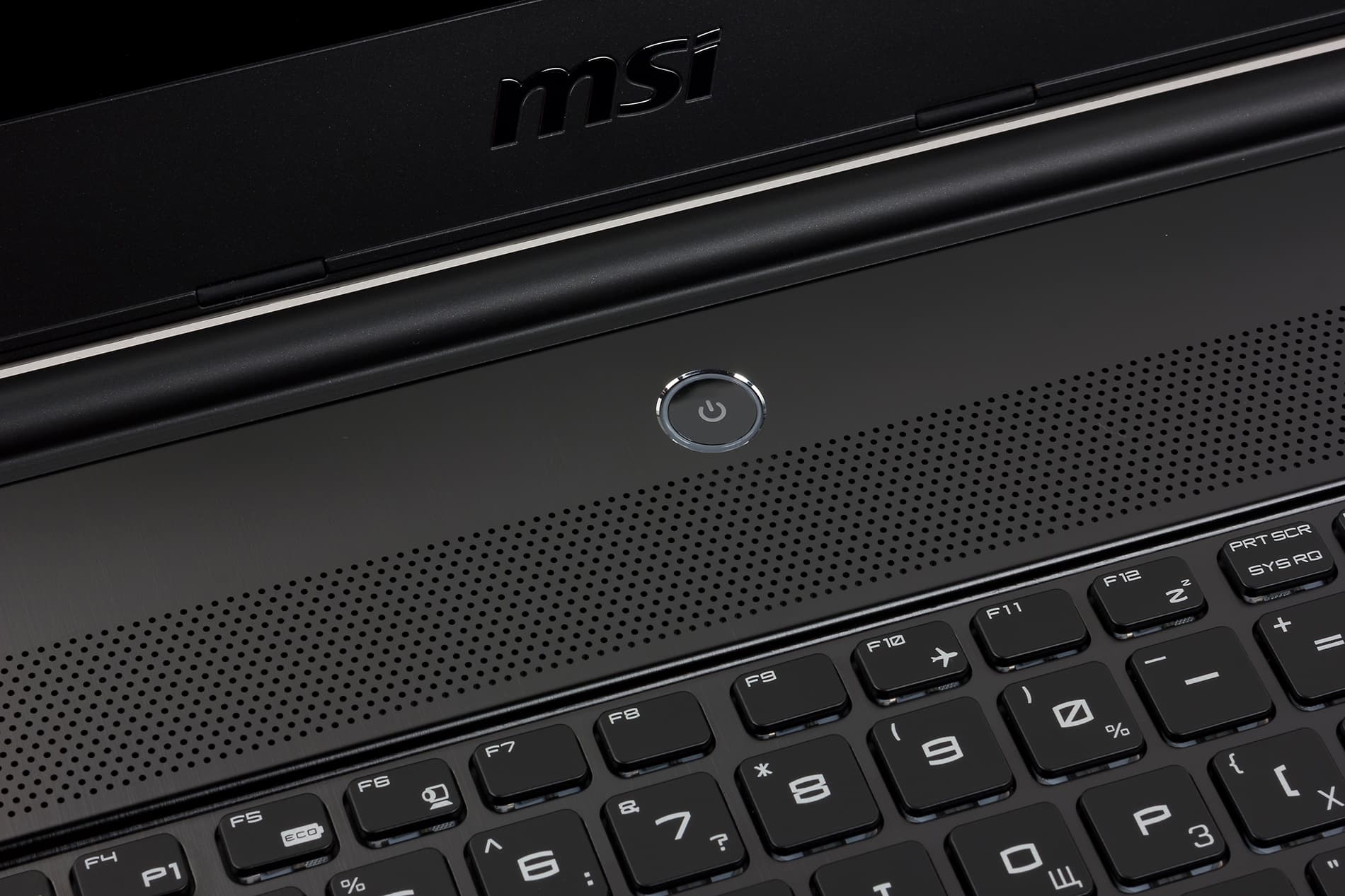 Собственно, из традиционного черного пластика здесь сделана только рамка экрана. Рамка эта не очень широкая: ее толщина с боков и сверху составляет 22 мм, а снизу — 31 мм. На рамке сверху по центру экрана расположена веб-камера и миниатюрные отверстия двух микрофонов, а снизу — традиционный логотип MSI.