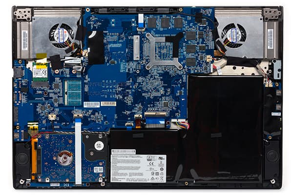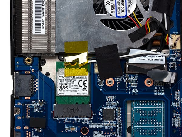 Одной из особенностей ноутбука MSI GS60 2PE Ghost Pro является возможность его относительно простой разборки. Для этого необходимо открутить 15 винтиков и снять нижнюю панель корпуса. После этого откроется доступ к системе охлаждения, HDD и модулю беспроводной связи.
