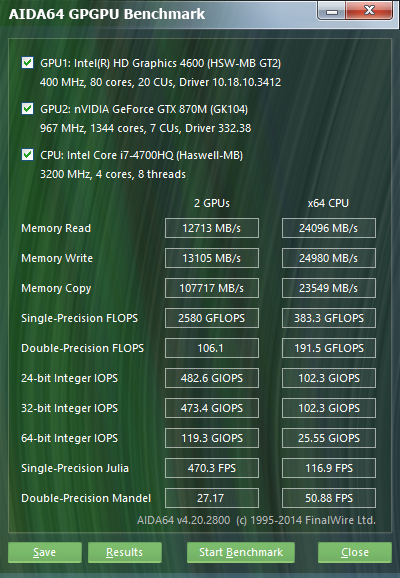 Прежде всего заметим, что одна из игр, Bioshock Infinite, просто не запускается на этом ноутбуке. Это, естественно, не проблема ноутбука, а проблема видеодрайвера Nvidia ForceWare 332.38, и если принудительно переключиться на процессорное графическое ядро, то игра запускается нормально. Кроме того, игру можно запустить и на дискретной видеокарте Nvidia GeForce GTX 870M, но для этого нужно использовать более старую версию видеодрайвера. К примеру, с драйвером Nvidia ForceWare 331.82 все работает без проблем.