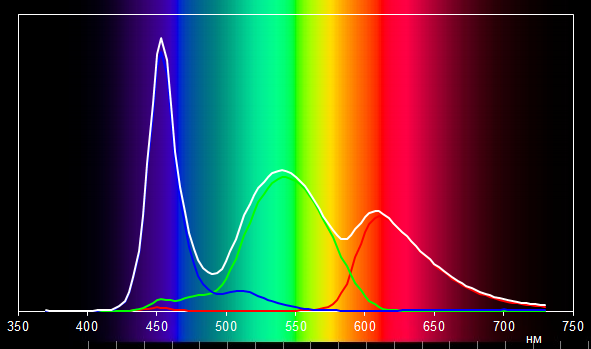 Светофильтры ЖК-матрицы немного подмешивают компоненты друг к другу. Так, спектры красного и зеленого цветов немного перекрываются. В принципе, такая ситуация вполне типична для ЖК-матриц, используемых в ноутбуках.