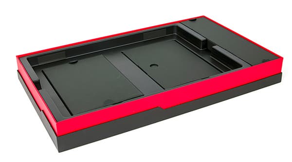 Ноутбук MSI GS70 2PE Stealth Pro поставляется упакованным в две коробки. Первая — это обычная невзрачная картонная коробка, которую сразу же выкидывают после извлечения из нее содержимого. А вот вторая коробка уже сделана из очень прочного картона и вполне соответствует понятию топового решения. Понятно, что упаковка — это последнее, на что стоит обращать внимание при выборе, но все же, когда смотришь на такую упаковку, сразу понимаешь, что речь идет о топовом продукте.