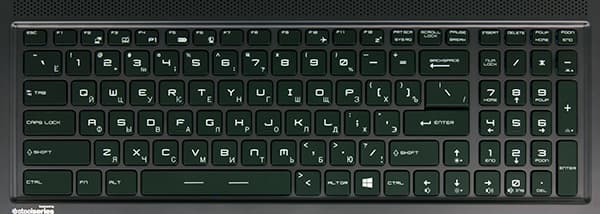 | Устройства ввода | Клавиатура | островного типа с подсветкой и блоком NumPad (SteelSeries) |