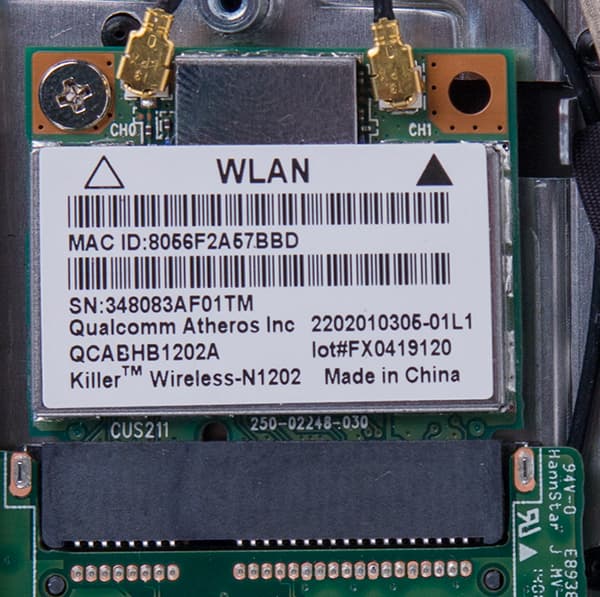 Коммуникационные возможности ноутбука определяются наличием беспроводного сетевого адаптера Killer Wireless-N 1202 на базе контроллера Qualcomm Atheros. К особенностям модуля беспроводной связи Killer Wireless-N 1202, выполненного в виде карты расширения Mini PCI Express половинного размера, относится поддержка двух антенн (MIMO) и двух частотных диапазонов. Модуль соответствует спецификациям IEEE 802.11a/b/g/n Wi-Fi и Bluetooth 4.0.
