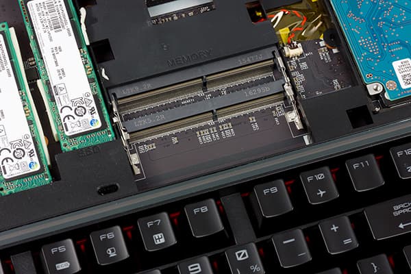 Для установки SO-DIMM-модулей памяти в ноутбуке предназначено четыре слота. В нашем случае в ноутбуке были установлены четыре одинаковых модуля памяти DDR4-2400 емкостью по 16 ГБ (Kingston MSI24D4S7D8MB-16), и, естественно, память работала в двухканальном режиме.