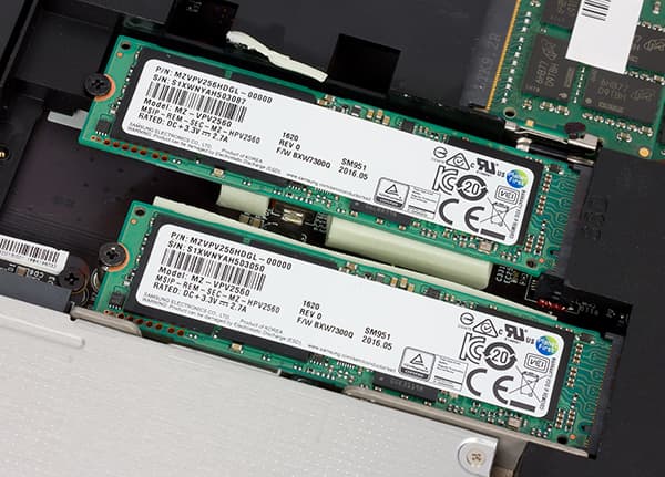 Отметим, что возможны вариации подсистемы хранения данных в этом ноутбуке, но два NVMe-накопителя в RAID — это максимум. Впрочем, в ноутбуке есть разъем mSATA для установки еще одного SSD-накопителя (в нашем варианте этот разъем был свободен).