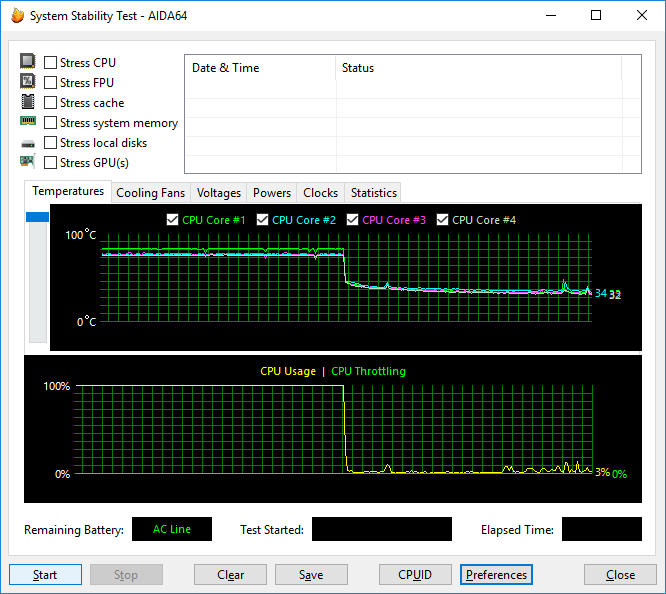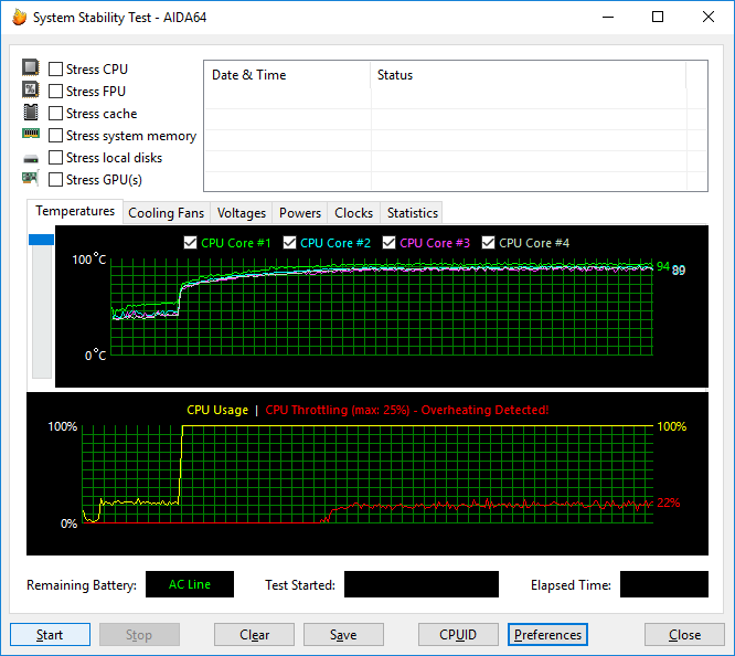 Если загрузить процессор утилитой Prime95, которая сильнее всего разогревает процессор, то тактовая частота ядер процессора составит 3,4 ГГц. Температура ядер процессора при этом достигнет 84 °C, а мощность энергопотребления процессора составит 71 Вт.