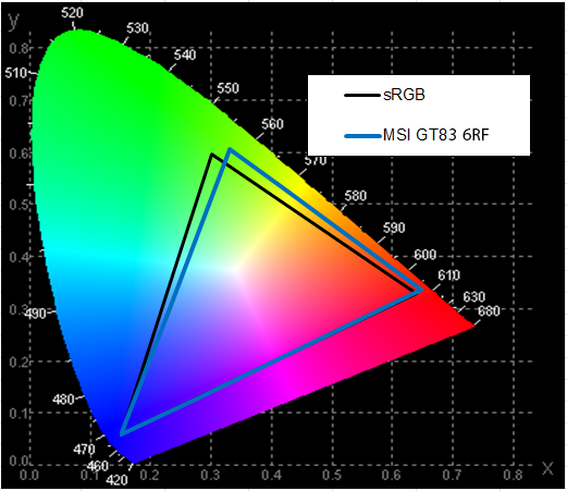 В ноутбуке MSI GT83VR 6RF Titan SLI используется матрица Super PLS (Samsung XJY7J 184HL) со светодиодной подсветкой на основе белых светодиодов (экран точно такой же, как в ноутбуке MSI GT80 2QE Titan SLI). Матрица имеет матовое антибликовое покрытие, ее диагональный размер составляет 18,4 дюйма. Разрешение экрана — 1920×1080 точек.
