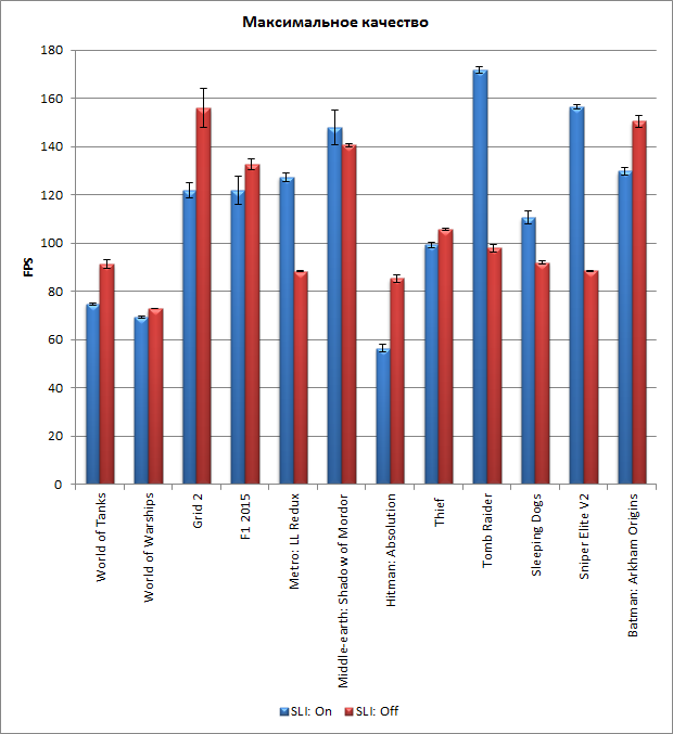 Отметим, что и в режиме SLI, и без него во все игры нашего тестового набора можно комфортно играть при настройках на максимальное качество.