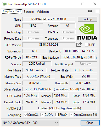 | Видеоподсистема | 2×Nvidia GeForce GTX 1080 (8 ГБ GDDR5) в режиме SLI | |