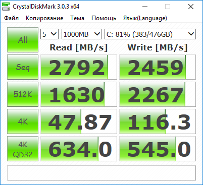 Приведем также результаты тестирования популярными утилитами CrystalDiskMark и AS-SSD.