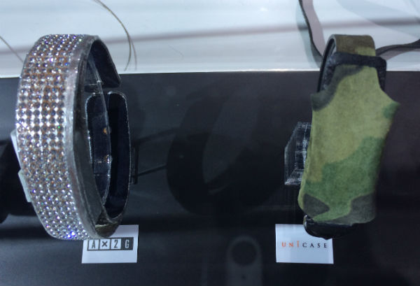 Подробнее о новинках Samsung и Sony будет рассказано в отдельных материалах, здесь же отметим, что на стенде японского производителя можно было увидеть множество вариантов браслетов — даже со стразами и в камуфляже.