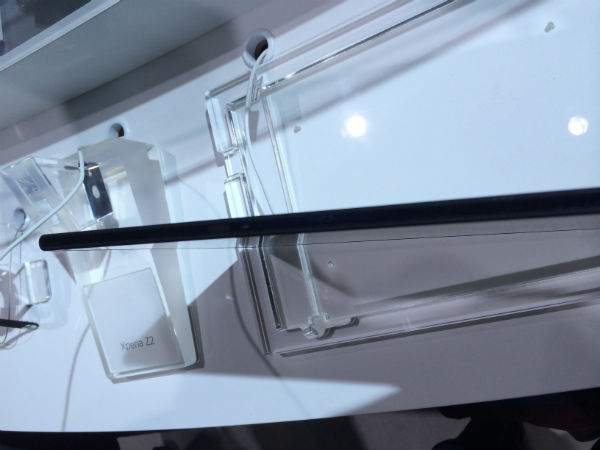 Помимо браслетов Sony показала новые смартфон и планшет линейки Xperia Z. В целом они унаследовали дизайн предыдущих моделей, но по толщине и массе iPad Air остался позади: Xperia Z2 Tablet весит всего 439 граммов против 480 граммов у iPad Air (в обоих случаях речь идет о версии с LTE-модулем; версии без него немного легче). Толщину Tablet Z2 можно оценить по фото ниже. Однако из-за сходства дизайна Tablet Z2 с первым поколением (Tablet Z) такого вау-эффекта, как в прошлом году, уже нет.