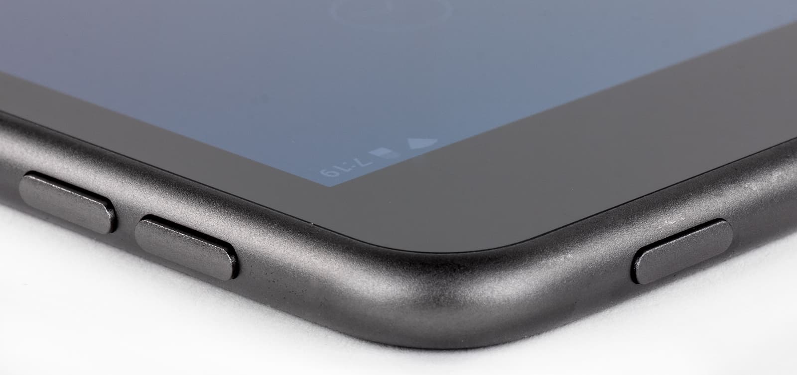 Кнопка выключения вынесена на верхнюю грань, отдельно от клавиш регулировки громкости. Одной рукой здесь не обойтись, для разблокировки планшета придется делать лишние движения.