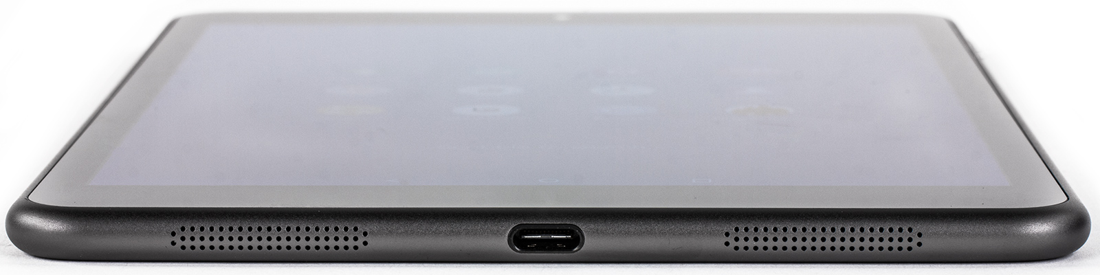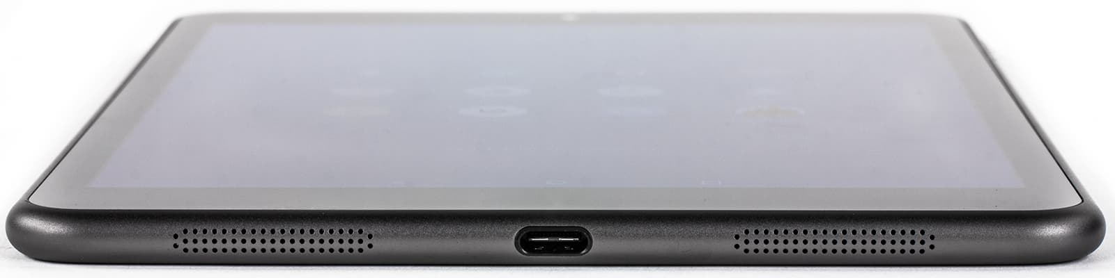 Динамики, конечно, же, вынесены вниз, по обе стороны от симметричного разъема USB Type C — самой примечательной части дизайна. С обычными коннекторами Micro-USB он не совместим и на данном этапе развития выглядит как нечто уникальное. Впрочем, мы уже занимаемся тестами других устройств с разъемом USB Type C.