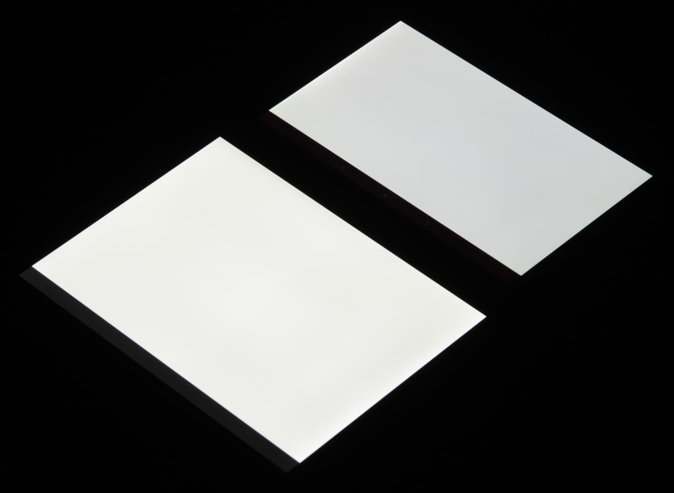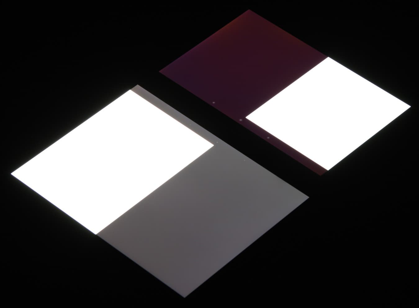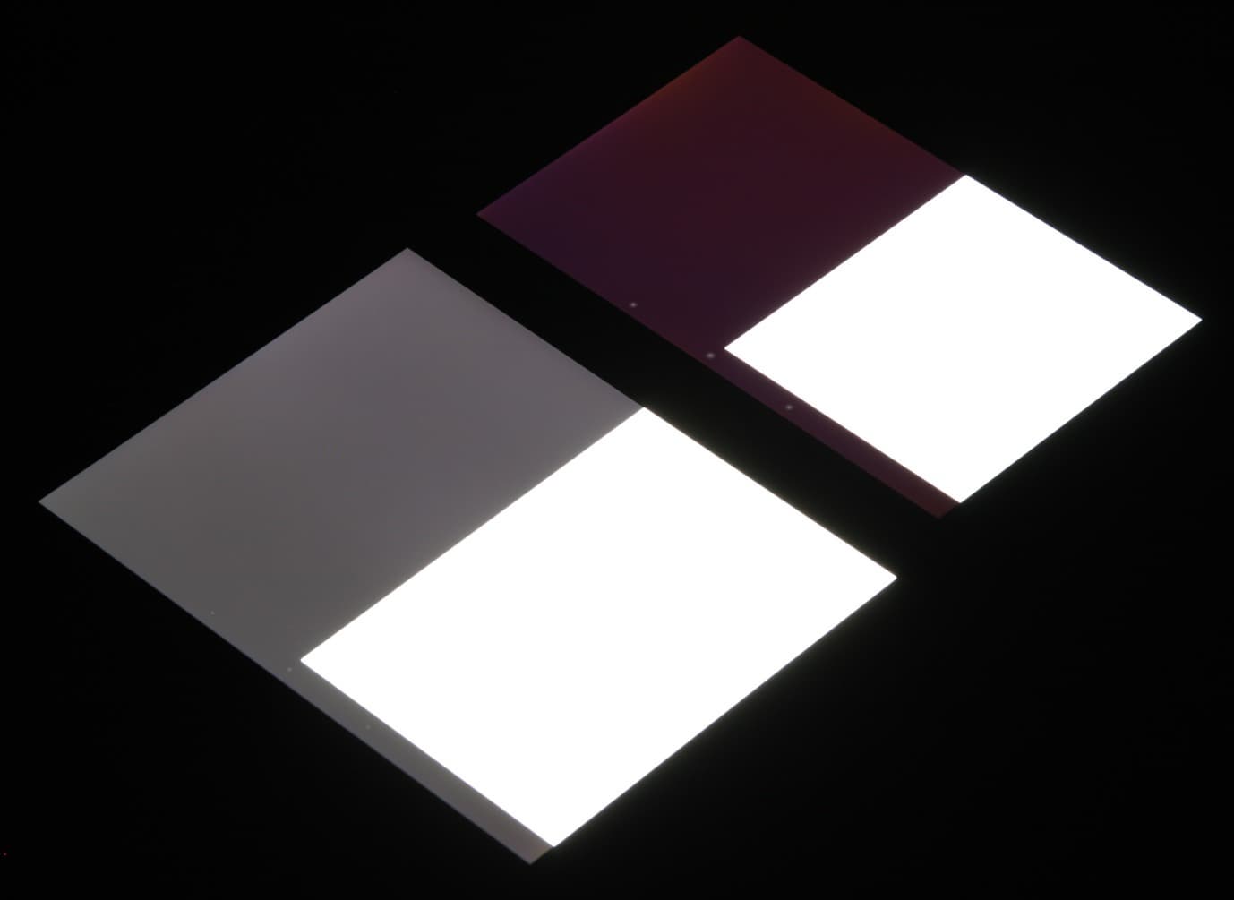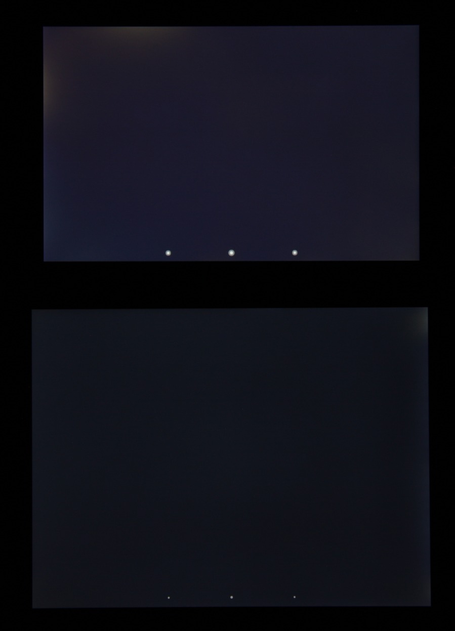 При перпендикулярном взгляде равномерность черного поля хорошая, но не идеальная, так как по правому краю (на фотографии ниже) есть участки с повышенной яркостью: