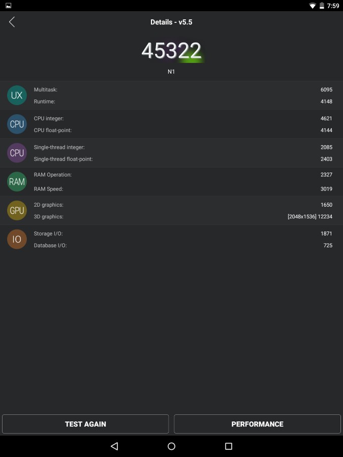 Тестирование в игровом режиме осуществить не удалось, поскольку Epic Citadel через apk-файл не заработал. В принципе, есть все основания рассчитывать, что Guided Tour прокручивалась бы на Nokia N1 примерно пять с половиной часов.